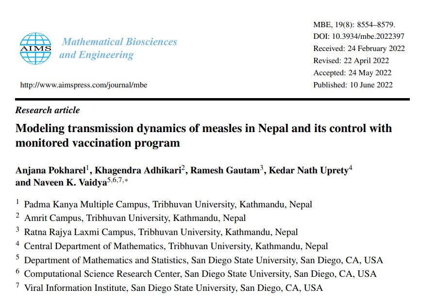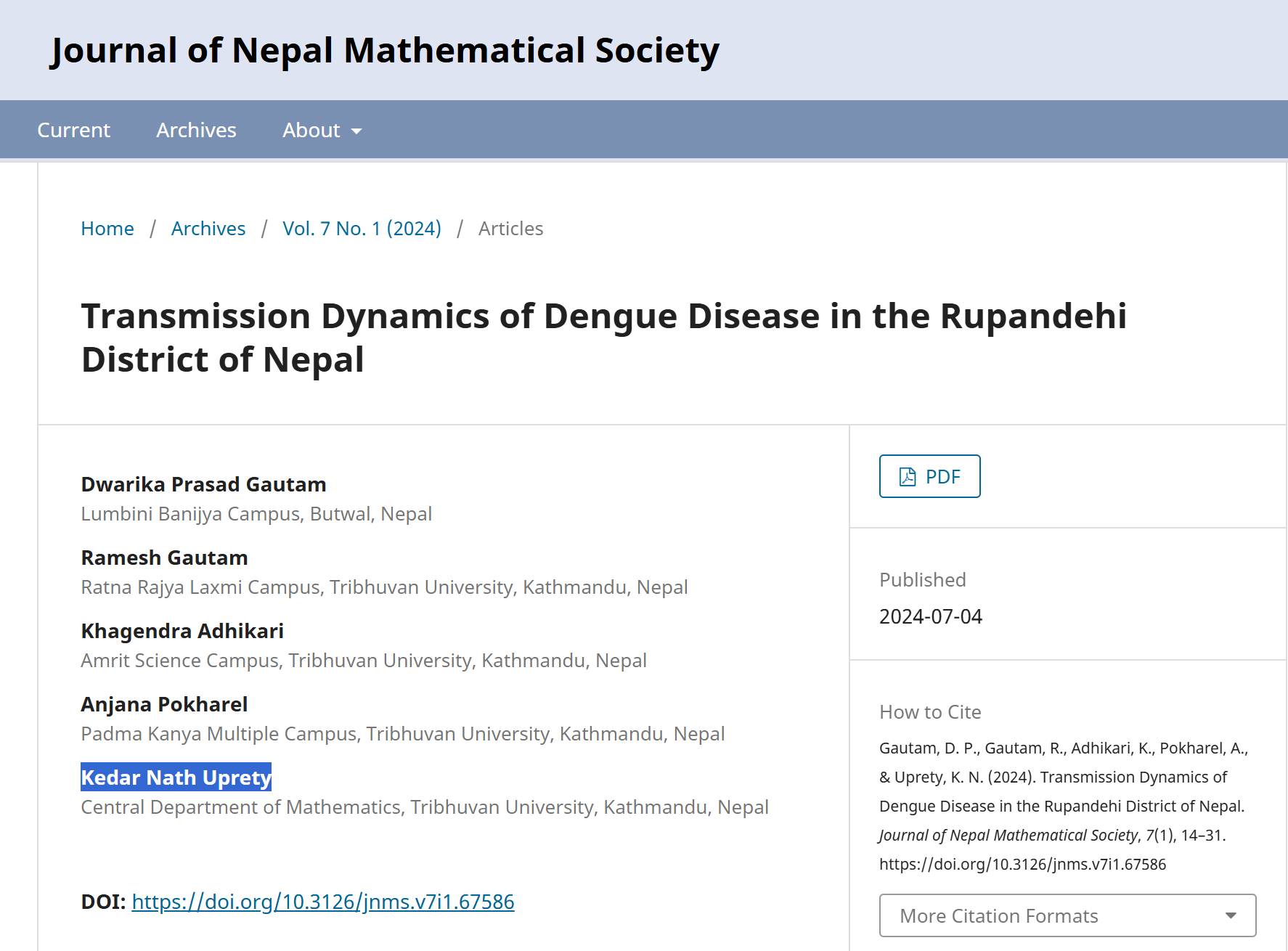 Khagendra Adhikari , Ramesh Gautam , Anjana Pokharel , Meghnath Dhimal, Kedar Nath Uprety , Naveen K. Vaidya